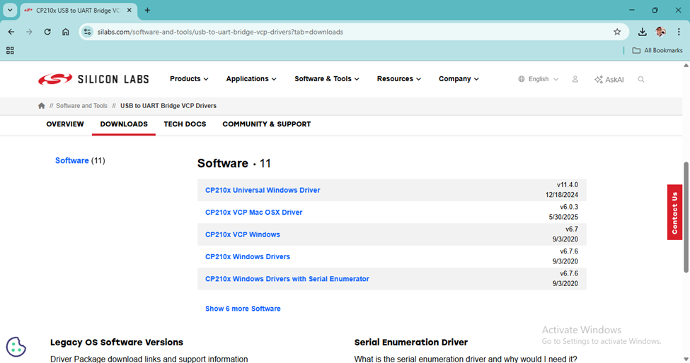 Visit the Silicon Labs website (https://www.silabs.com/software-and-tools/usb-to-uart-bridge-vcp-drivers?tab=downloads) and download the USB driver for your OS.”